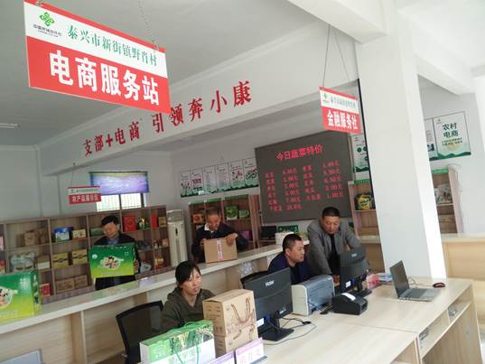 江苏省泰兴市充分运用“互联网+三农”发展模式,各村党支部参与,培育壮大特色产业,助力乡村振兴。泰兴市新街镇野肖村“电商超市”工作人员在进行订单处理、打包发货。