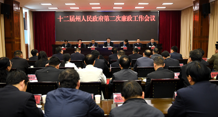 为贯彻落实国务院及省政府第一次廉政工作会及相关会议精神,落实相关部署,5月5日,十二届州人民政府召开第二次廉政工作会议。会议总结了2017年全州政府系统党风廉政建设和反腐败工作,分析当前形势,并安排部署了今年工作。州委副书记、州长杨克宁出席并讲话。